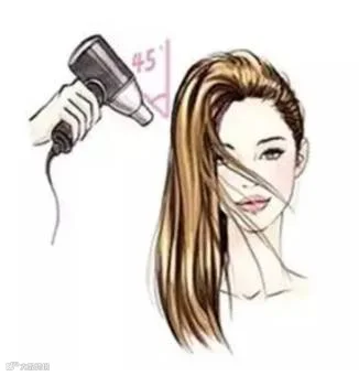 Step6.风口与发丝保持45度角,这个角度能最大程度的闭合毛鳞片。