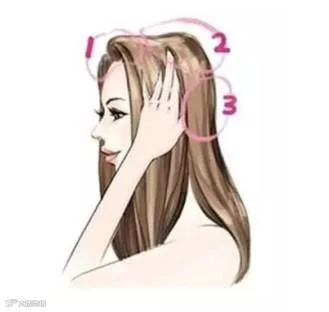 Step2.分区涂抹头皮护理产品,将头发分为刘海发际、头顶、后脑下部这三个区域来涂抹。