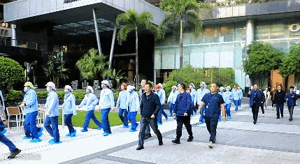 下午16时30分,随着警报声响起,园区消防安全疏散灭火演练正式拉开帷幕。各企业员工动作迅速,仅用时3分钟,按照疏散路线有序撤离到广场的安全区域。