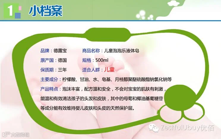 德露宝,德国专业婴幼儿洗护品牌,是Schmees集团旗下知名品牌。1985年Schmees集团继承人赴美留学归国后,正值集团研发新的产品线——婴幼儿洗护系列,便由海归一词联想到“海龟”,设计出一款海龟造型的包装,寓意母亲对宝宝的细致呵护。为了保证婴幼儿系列产品的天然安全性,SCHMEES集团联合德国知名制药医学者专门针对宝宝脆弱肌肤研发设计,能促成并强化宝宝肌肤表层的皮脂膜,起到润泽肌肤,防止细菌感染的作用。另外,德露宝婴幼儿系列产品的PH值为5.0,最贴近1-8岁宝宝肌肤的PH值,不刺激更安全!