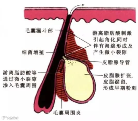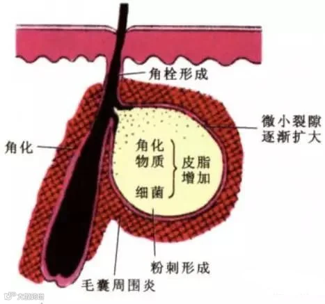 当毛孔这个保持内外来往的通道受阻时,轻则形成粉刺,重则形成面疱,而发炎则是皮肤受到侵害时,免疫系统做出的抗争。