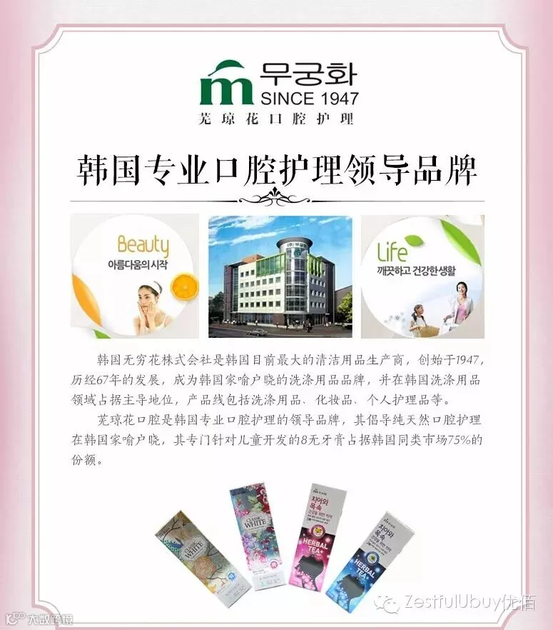 琼花,是无穷花株式会社的旗下口腔护理品牌,品牌创立于1947年。其产品主要包括成人牙膏系列、儿童牙膏系列、牙刷系列等。