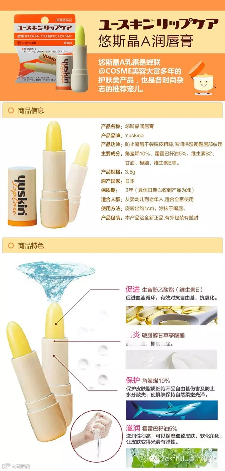 Yuskin悠斯晶润唇膏