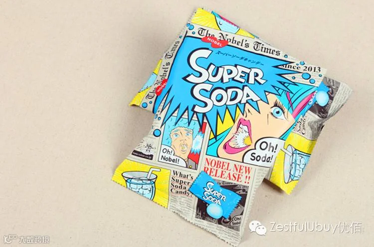 诺贝尔碳酸系列最新发售,汽水味苏打三层夹心糖,超刺激劲酸口感,三种不同食感变化,碳酸涂层,汽水苏打夹心,赶快来体验吧 外包装也是十分逗趣的,口水直流~
