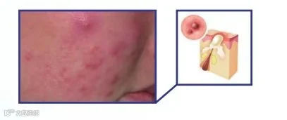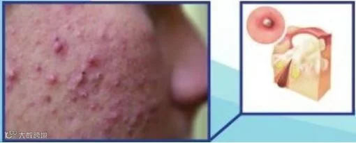 炎性丘疹进一步发展演变而成,大量白细胞堆积形成白色脓头,挤压会有脓液。↓↓↓