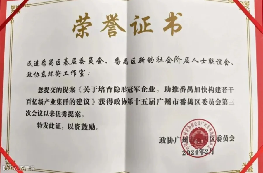 番禺区新联会提交的《关于培育隐形冠军企业,助推番禺加快构建若干百亿级产业集群的建议》;