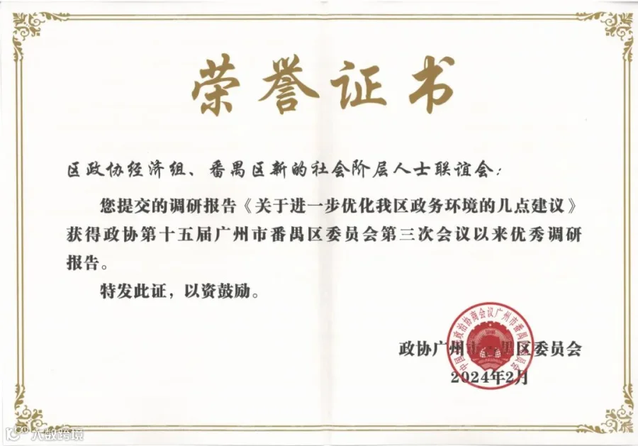 其中,番禺区新联会提交《关于进一步优化我区政务环境的几点建议》被评为优秀调研报告;
