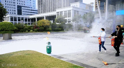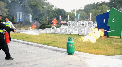 讲解结束后,组织园区企业员工按灭火器使用方法进行实操训练,对现场模拟火点进行灭火操作。