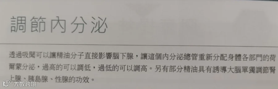 另有部分精油具有诱导大脑单独调节肾上腺,胰岛腺,性腺的功效。