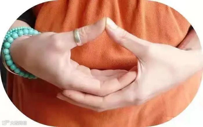 3、导引放松。您坐在椅子上,将双腿张开与肩同宽,并将左右两手圜结在丹田(小腹之下)下面,平放在胯骨部分。两手心向上,把右手背平放在左手心上面,两个大拇指轻轻相扣。这在佛家,便叫做“结手印”,这种手势,也叫做三昧印(就是定印的意思)。