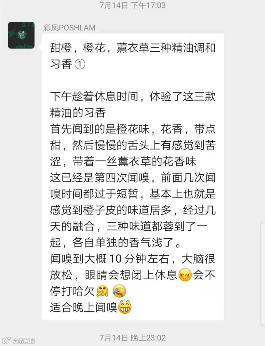 上个月组织了两个打卡,一个是习香,一个是温阳调脊椎,我们将实践中最受大家欢迎的两个配方分享给大家,一个是静心助眠,一个是清凉提神。