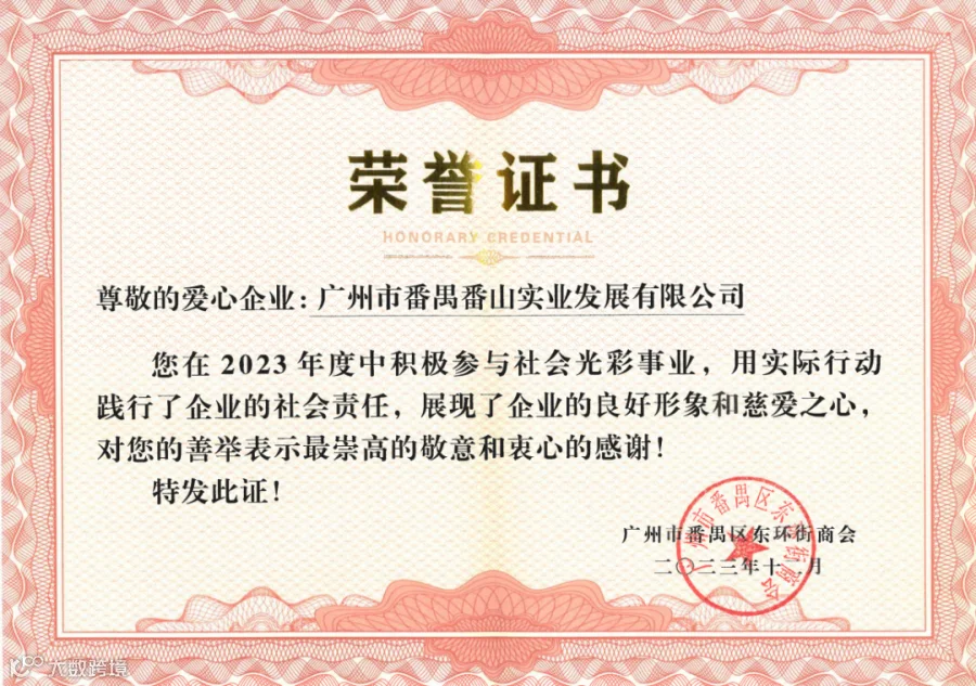 ▲番山实业获颁“2023年度社会光彩事业贡献奖”