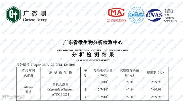 报告显示 对于居家环境最容易滋生,也时刻威胁着我们健康的黑曲霉(霉菌)、白色念珠菌,金黄色葡萄球菌三种常见细菌的抑菌效果均达到99.96%以上。