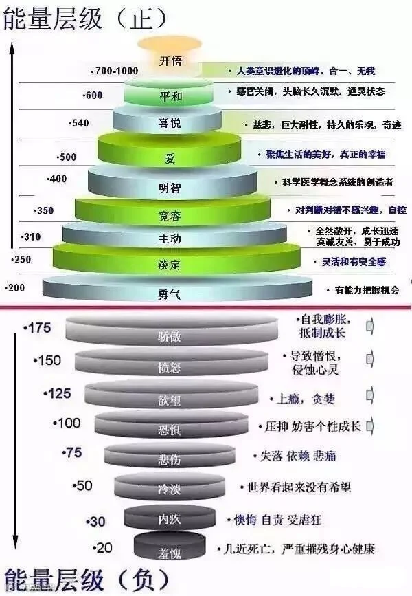 人类各种不同的意识层次都有其相对应的能量指数,人的身体会随着精神状况而有强弱的起伏。