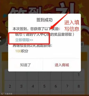 3、如是实体礼品,30天打卡成功后,会弹出签到成功的页面,记得点击蓝色“立即领取”,填写收件信息,否则算自动放弃。