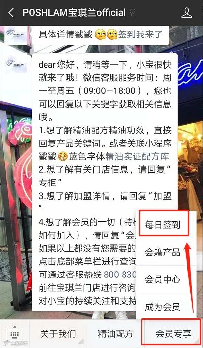 1、在公众号底部的菜单栏,点击“会员专享—每日签到”,可进入签到页面。