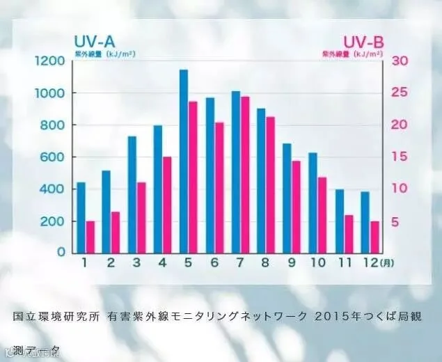 (2015年1-12月的紫外线,via:日本国立环境研究所,有害紫外线检测网)
