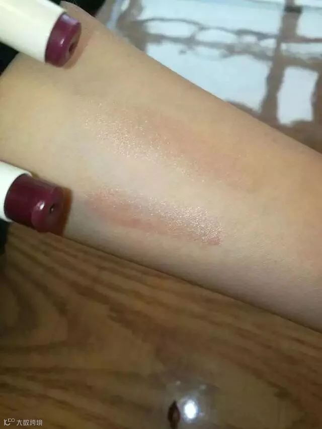 在手腕上试试,淡淡的粉红色加上滋润度强,有靓丽的光泽呈现。