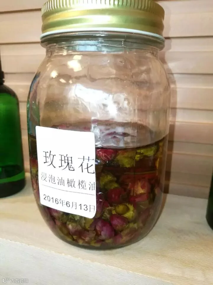 买来干燥的玫瑰,然后倒入保质期较长的植物油密封后放置阴凉干燥处,定期晒晒太阳和翻转,结果一月过了没颜色,二月过了没颜色,三月过了没颜色,有点小郁闷,请教了朋友和查看了相关书籍,又找了些红色花朵的和各色不同品种的玫瑰做了浸泡油,又改良了方法后终于经过了大半年的实验找到了我们想要的颜色。