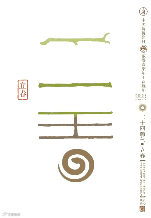 春的头上意味着初发的幼苗,正从土里怯生生的探出头来,春下方的日,表示沉睡在地底深处的生机,被春日的太阳唤醒,正逐步的向上伸展。