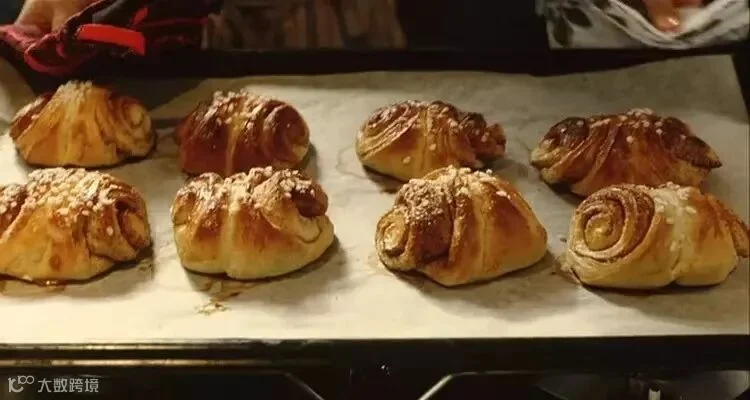 路边小店烘焙完成的肉桂卷,淋上糖霜