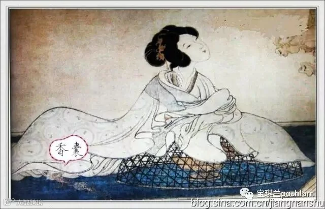 △古画中的仕女熏香场景,衣袖之下为熏衣笼,笼内为熏炉