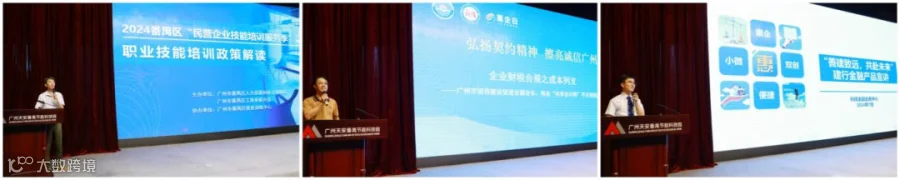 广州市诚信建设促进会副会长、伟金“共享会计师”平台创始人陈耿升,中国建设银行广州番禺支行、科技金融业务中心客户经理陈惠辉及番禺区人社局、区就业训练中心李军分别就《企业财税合规之成本列支》《“善建致远,共赴未来”建行金融产品》《2024年番禺区“民营企业技能培训服务季”》主题进行了宣讲。