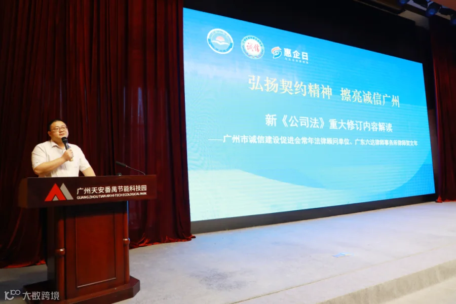 广州市诚信建设促进会常年法律顾问单位、广东六达律师事务所律师贺文年带来了《新公司法重大修订内容解读》主题分享,细致分析了2023年底全国人大常委会审议通过的第六次修订的《公司法》对企业投融资活动和公司治理的影响,为在场的企业代表提供了实用的法律指导。