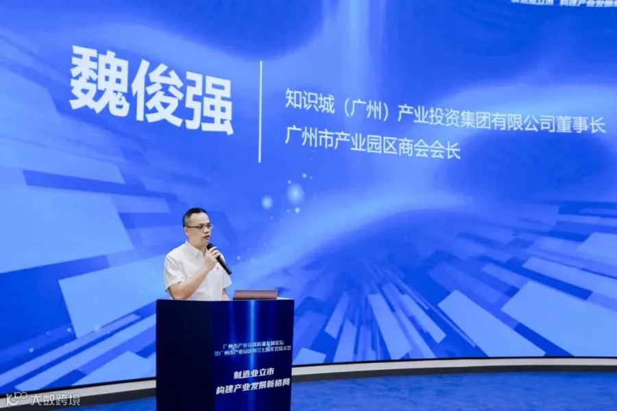 商会会长、知识城(广州)产业投资集团有限公司董事长魏俊强介绍了商会产业研究、园区规划、运营咨询、招商对接、园企服务等服务平台功能;同时表示知识城集团作为商会会长单位,未来将发挥国企资源优势,与商会共同加强行业之间的对接联动,引导园区走专业化、特色化、创新性的道路,促进广州市产业园区实现高质量发展。