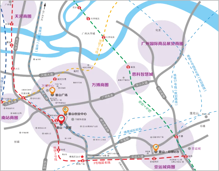 作为番山ABP系列园区之一的番山智库地处番禺大道的中轴位置,比邻广佛城际轻轨站,新光快速、广明高速、南沙港快线、京珠高速等高速通达全市及珠三角,万博商圈与市桥商圈近在咫尺。园区总建筑面积约 20 万平方米,重点引进新一代信息技术、人工智能、节能环保、新能源汽车、生物科技、大数据应用等行业总部型企业。目前已入驻80余家科技创新型企业。