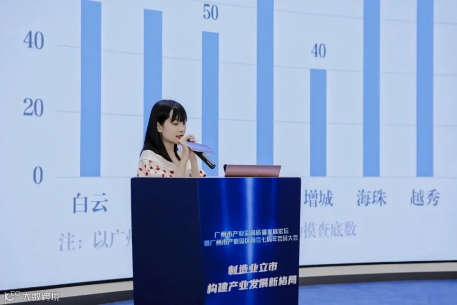 商会秘书长罗明如发布广州市产业园区发展报告。据商会统计,广州市共有1500多个产业园区,各区分布不均,从化、花都、越秀数量较少,黄埔、番禺、白云园区数量领先;2021年越秀区产业园区租金中位数约为112.5元,位居第一;天河和海珠均约为90元,并列第二。