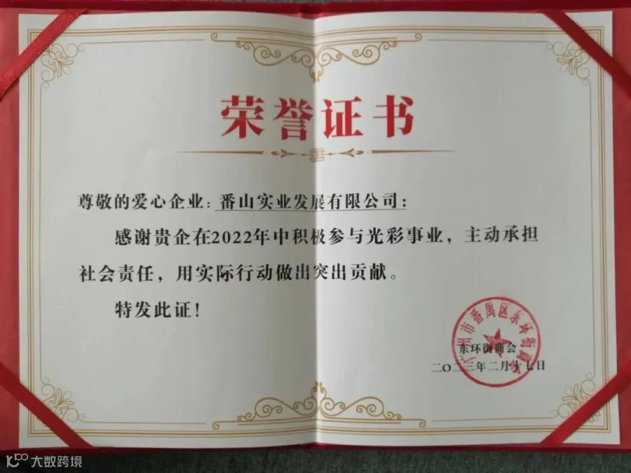 当晚,以“智汇东环、创新发展”为主题举办了东环街商会2023年春茗交流会”,为参加2022年社会光彩事业的商会企业颁发证书。其中,广州市番禺番山实业发展有限公司榜上有名!