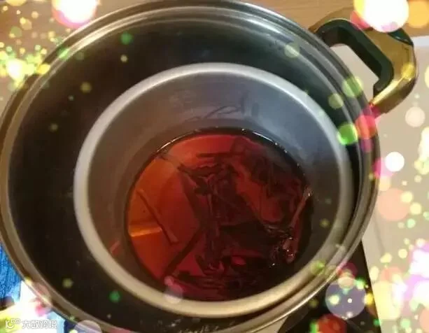 2. 将浸泡油含药材加热约20~30分钟,此时加入蜂蜡溶解