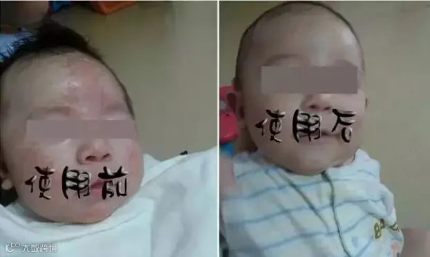 (图中为使用紫黄膏涂抹一个月后的宝宝,由于宝宝未成年所以必须打上马赛克,加上未徵得宝宝本人同意,避免他十八年后心情不舒爽)