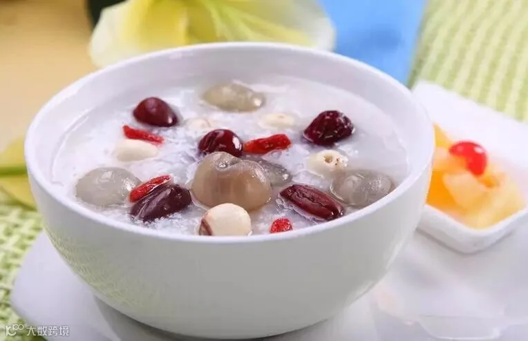 做法:莲子先煮片刻,再放入百合、大枣、银杏、粳米煮沸后,改用小火煮至粥稠时加入冰糖稍炖即成。