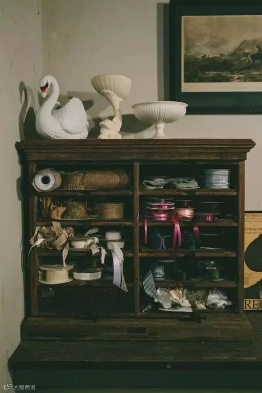 流窜在屋内的还有不曾间歇的复古韵味,满盈着花香和大自然融合的气味。而立在边角的还有一台老式收银机,和安娜最爱的一柜缎带收集。
