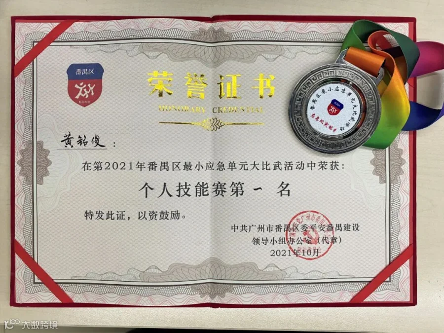 其中,来自番山创业中心应急单元的黄铭俊同志在大比武活动中荣获“个人技能赛第一名”。