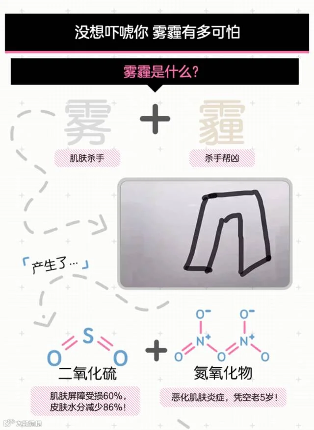 a.雾霾=雾(杀手帮凶)+霾(肌肤杀手)