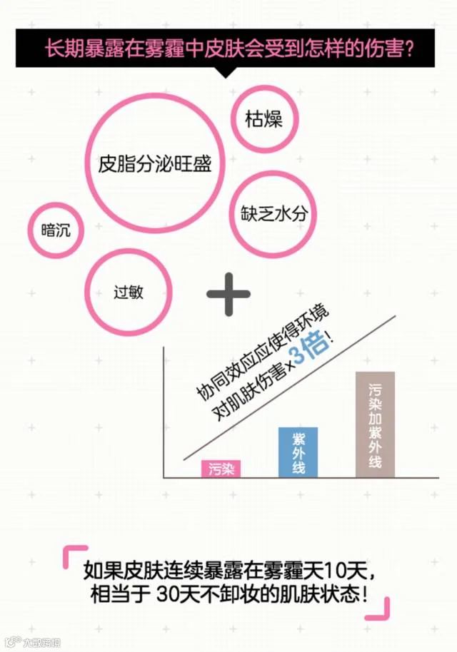 如果皮肤连续暴露在雾霾天10天,相当于30天不卸妆的肌肤状态。