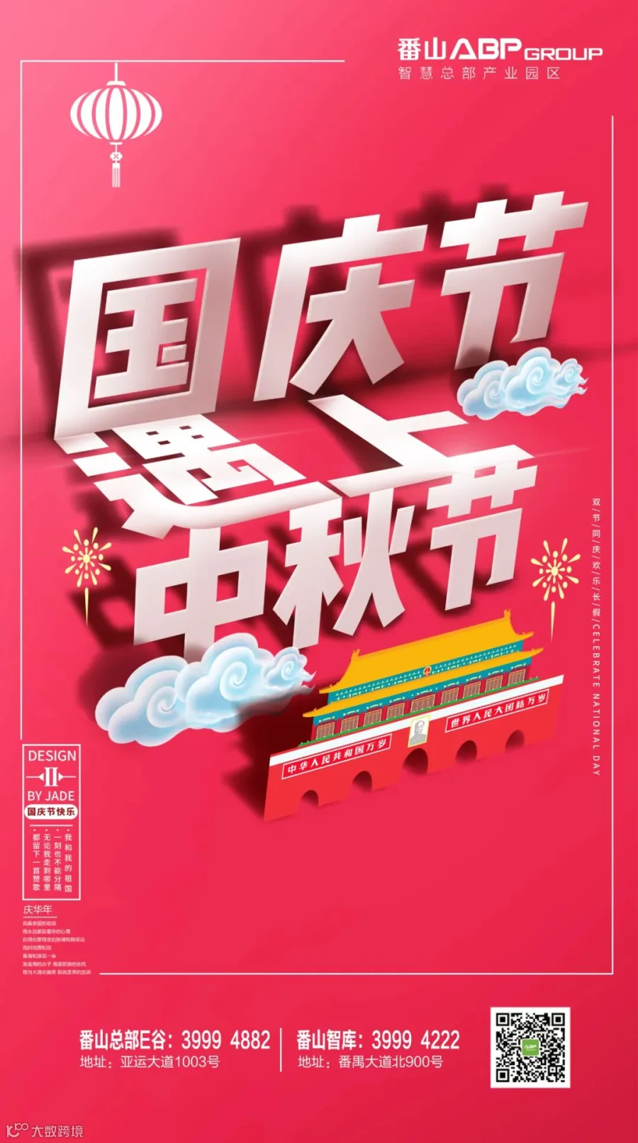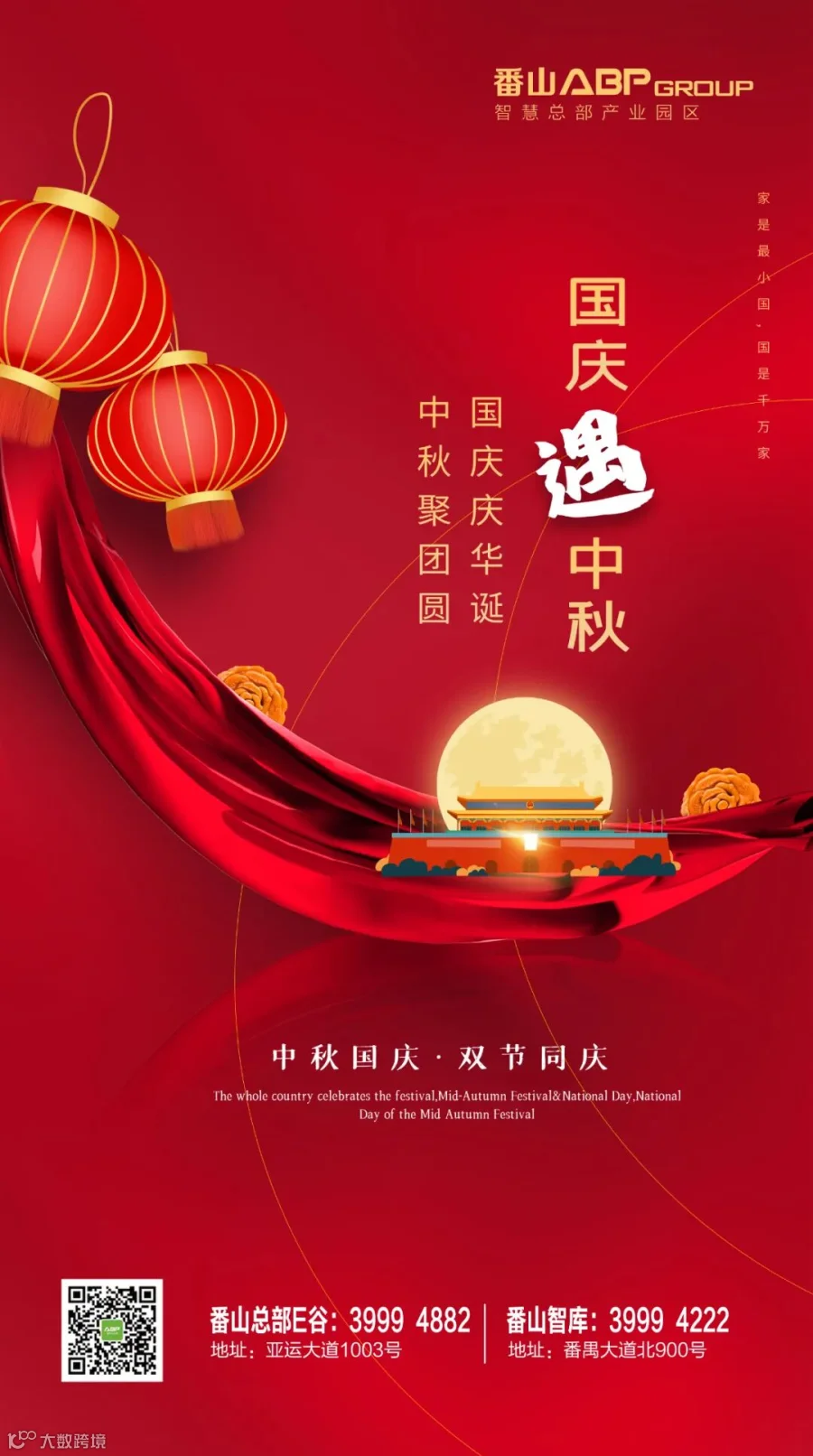 “十一”国庆节及中秋节双节即将来临,番山ABP园区祝大家节日快乐,阖家欢乐,万事如意!