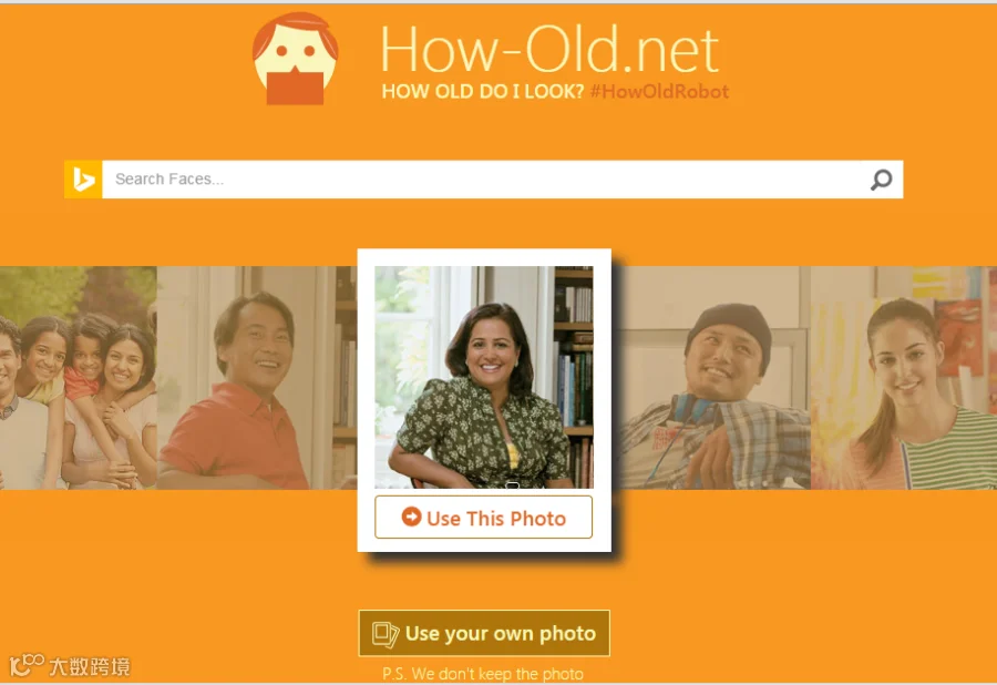 打开how-old.net,点击“Use your own photo”并上传图片,系统马上就能识别出你的颜值哦!例如↓