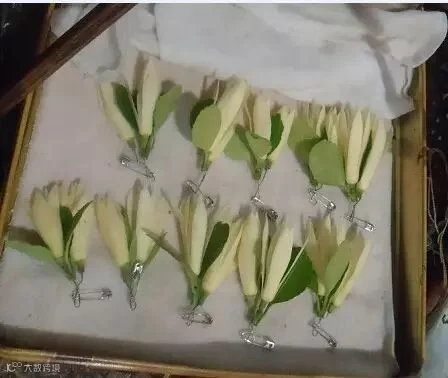 上海的街边弄堂口上,至今还能看到银丝缕缕的老奶奶端坐一角,旁边放着一个细竹篾编织的提篮,铺着暗蓝碎白花棉布,布面上轻柔摆放这的就是白玉兰花。花瓣洁白,花柄鲜绿,三五成堆的拢在一起。老奶奶用细针引线把几朵花串在一起,可以挂在胸口,也可以别在包上,香气隐隐绰绰,清新怡人。