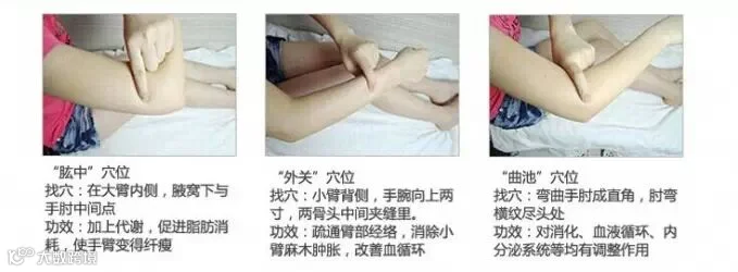 需要瘦手臂的朋友,可重点按压肱中、外关及曲池三个穴位。