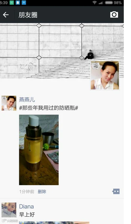 1、在微信朋友圈或微博以#那些年我用过的防晒瓶#为标签,晒出你的防晒乳、BB霜、修护面膜贴。