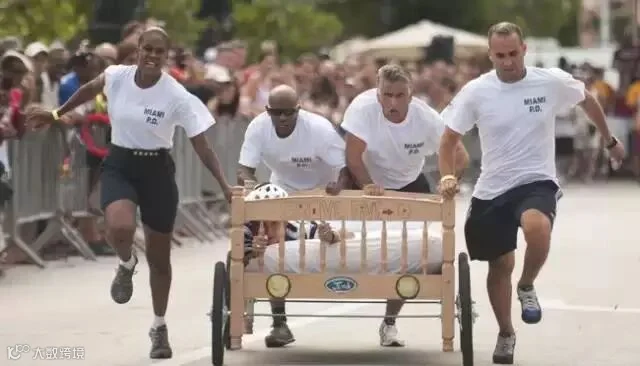 推床赛车大赛。。。规则是一个人躺在床上然后其他人推着床跑。。