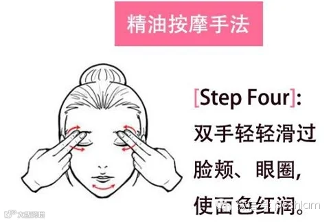 Step 4:双手轻轻滑过脸颊、眼圈,增加脸部的血液循环。