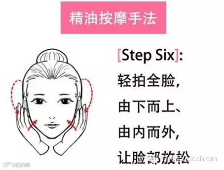 Step 6:最后轻拍全脸,由下而上、由内而外,让脸部放松,等待精油全部吸收。