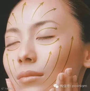 Step 2:从脸部内侧开始,由内而外、从左至右,慢慢按摩,提升皮肤紧实度。