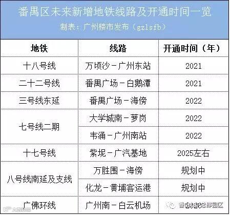 番禺将再开通7条地铁线,