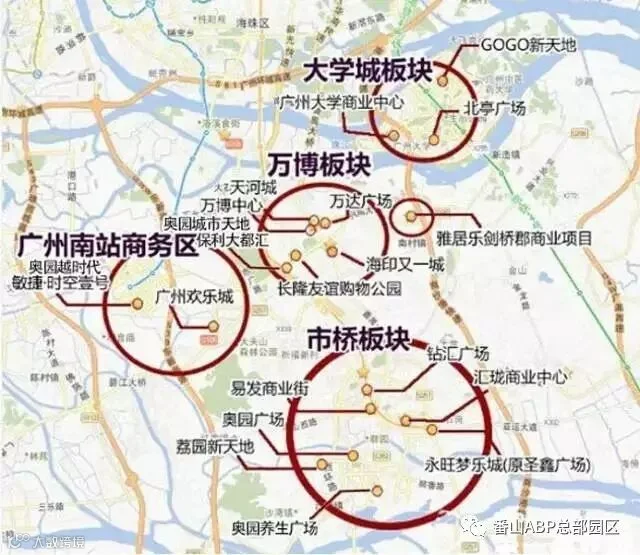 大学城板块、南站商圈、市桥商圈、万博商圈!